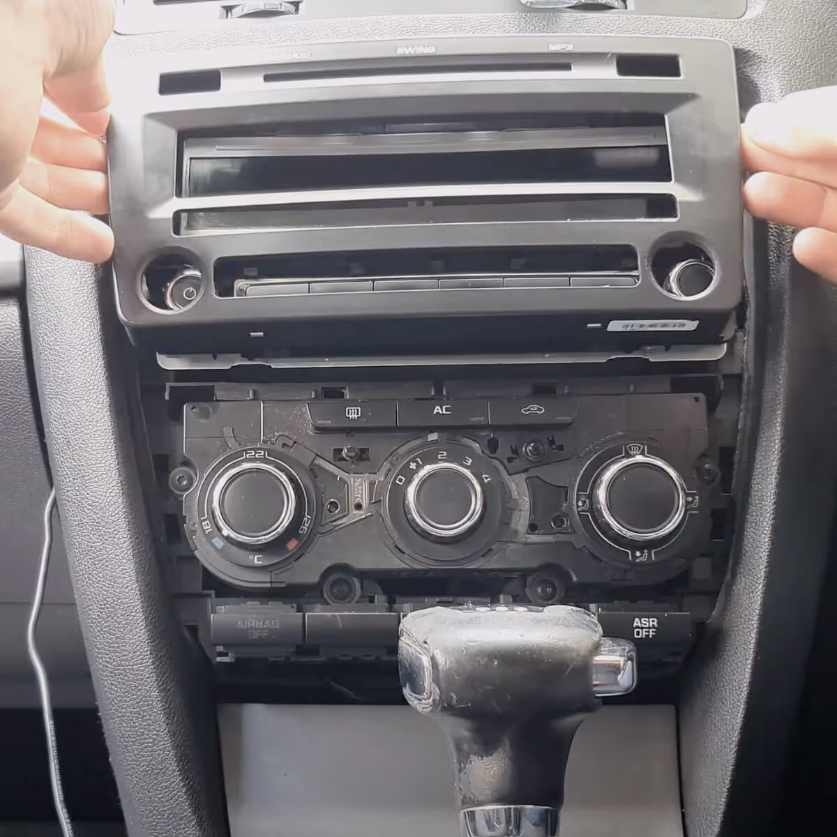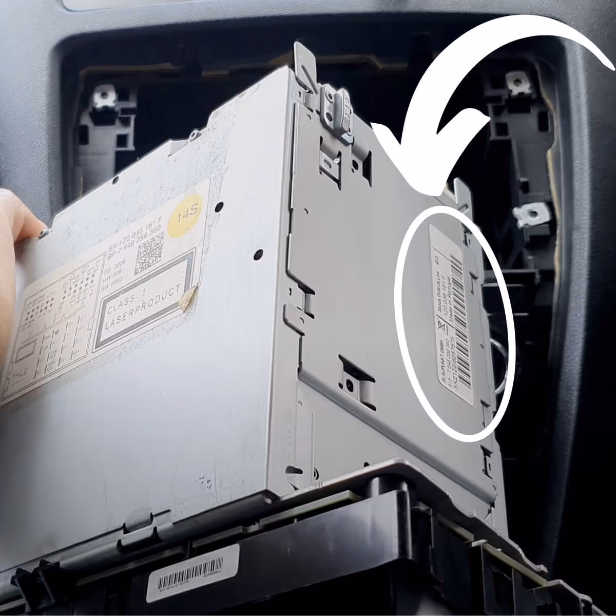 4. Carefully remove the radio and view the sticker. Note, you don't have to unplug your radio to view the label.